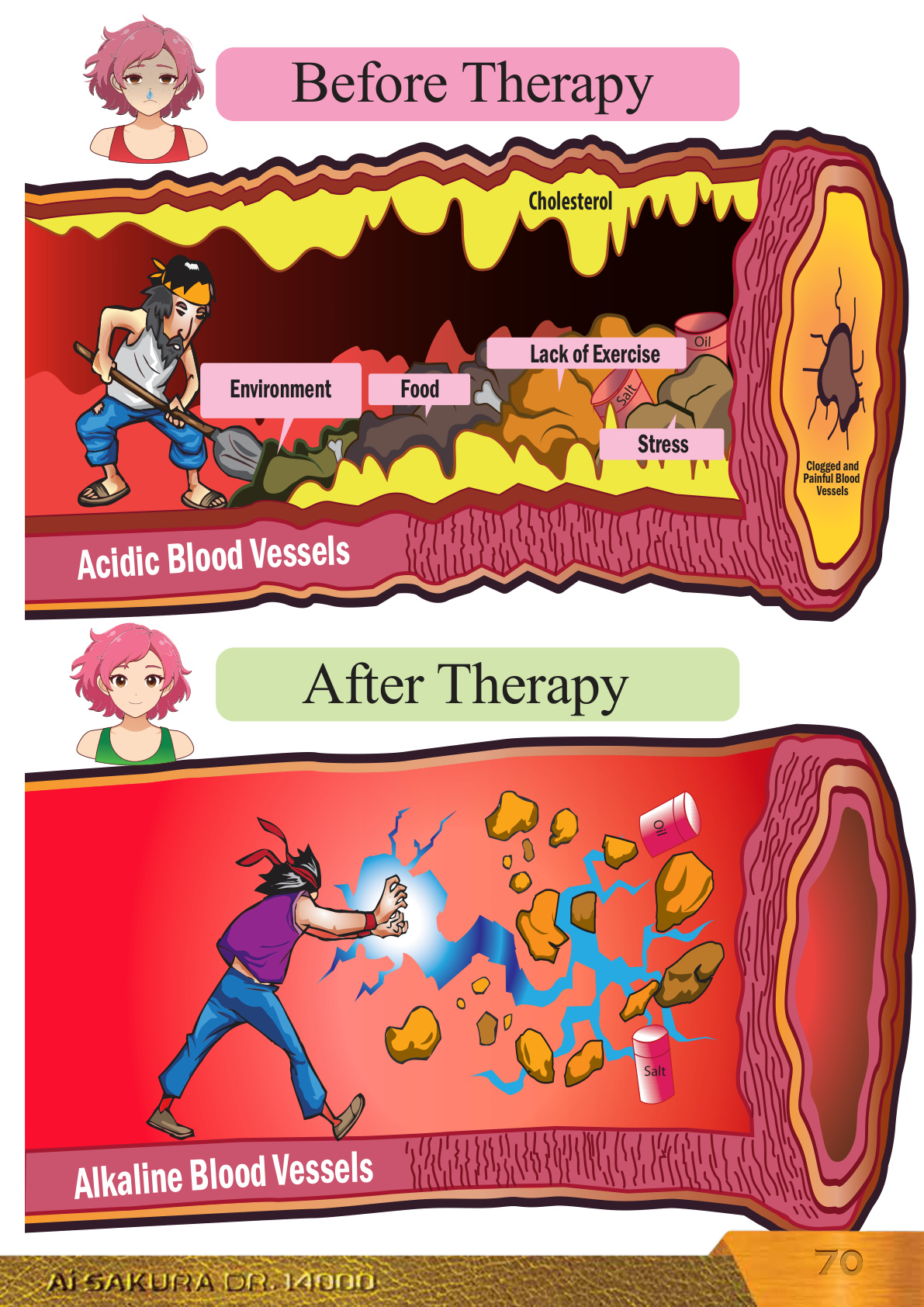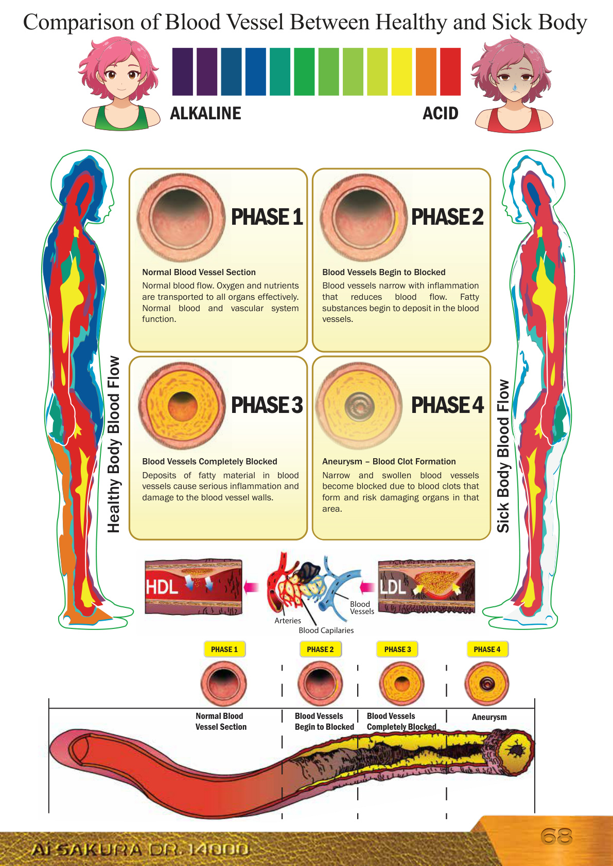 Arteries Blood CapilariesBlood Vessels Comparison of Blood Vessel Between Healthy and Sick Body Normal Blood Vessel SectionBlood Vessels Begin to BlockedBlood Vessels Completely BlockedAneurysmHealthy Body Blood Flow Sick Body Blood FlowALKALINE ACID PHASE 1 PHASE 2 PHASE 3 PHASE 4 Normal blood flow. Oxygen and nutrients are transported to all organs effectively. Normal blood and vascular system function.Normal Blood Vessel Section Blood vessels narrow with inflammation that reduces blood flow. Fatty substances begin to deposit in the blood vessels.Blood Vessels Begin to Blocked Deposits of fatty material in blood vessels cause serious inflammation and damage to the blood vessel walls.Blood Vessels Completely Blocked Narrow and swollen blood vessels become blocked due to blood clots that form and risk damaging organs in that area.Aneurysm – Blood Clot FormationPHASE 1 PHASE 3PHASE 2 PHASE 4 6868